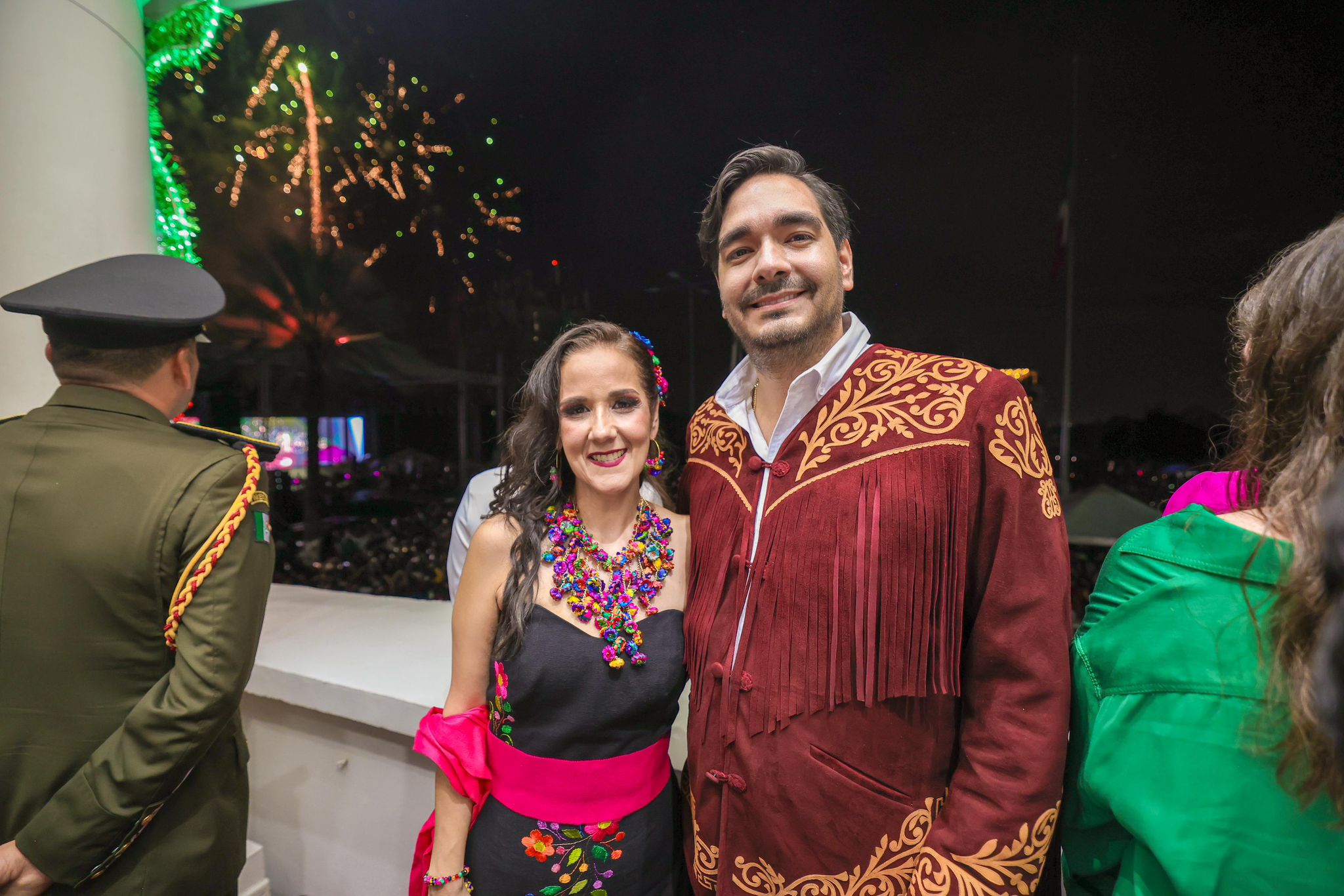 Al balcón del R. Ayuntamiento asistió el Coronel de Caballería DEM, Israel González Alatorre Comandante del 19° Regimiento de Caballería Motorizado, acompañado por la señora Luz Mila Ramírez Navejar, y representando al General de Brigada DEM Juan José Gómez Ruiz, Comandante de la Octava Zona Militar.