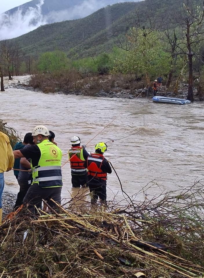 “Con cuerdas y una lancha inflable fue como el equipo de rescate de Protección Civil Tamaulipas pudo llevar a cabo la extracción de estas personas que afortunadamente se encontraban bien de salud”, redacta una parte del post en la página oficial de Facebook.