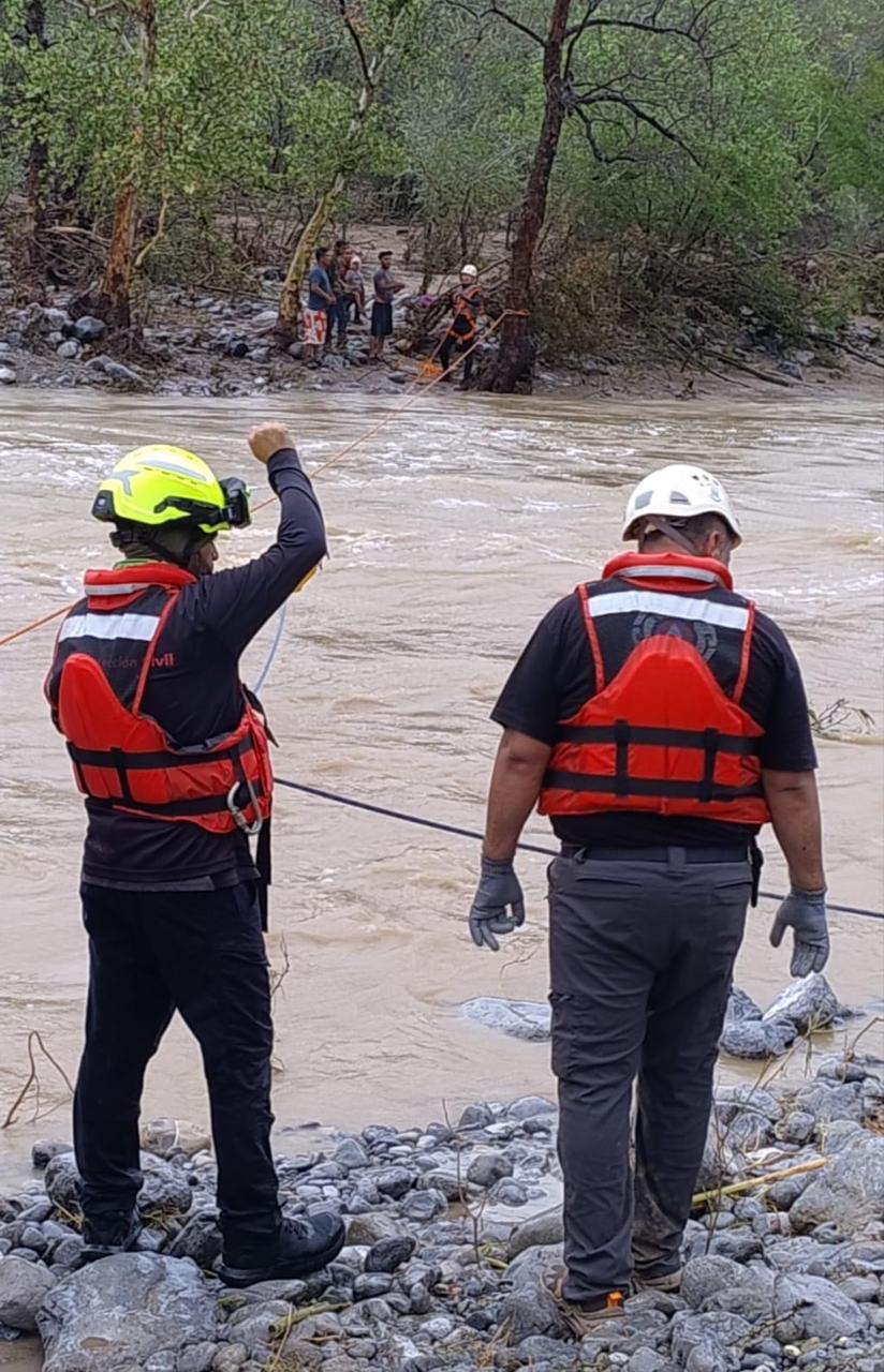 Ciudad Victoria, Tamaulipas.- Elementos de Protección Civil del Estado, rescataron a cuatro personas que quedaron incomunicadas tras la creciente del río Chihue.