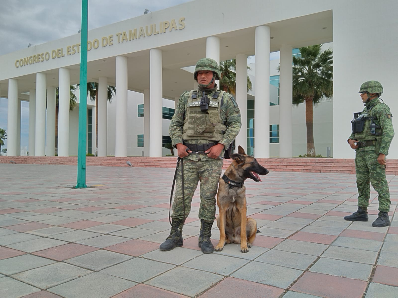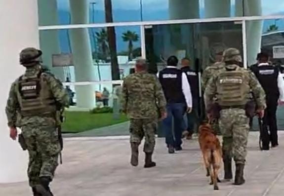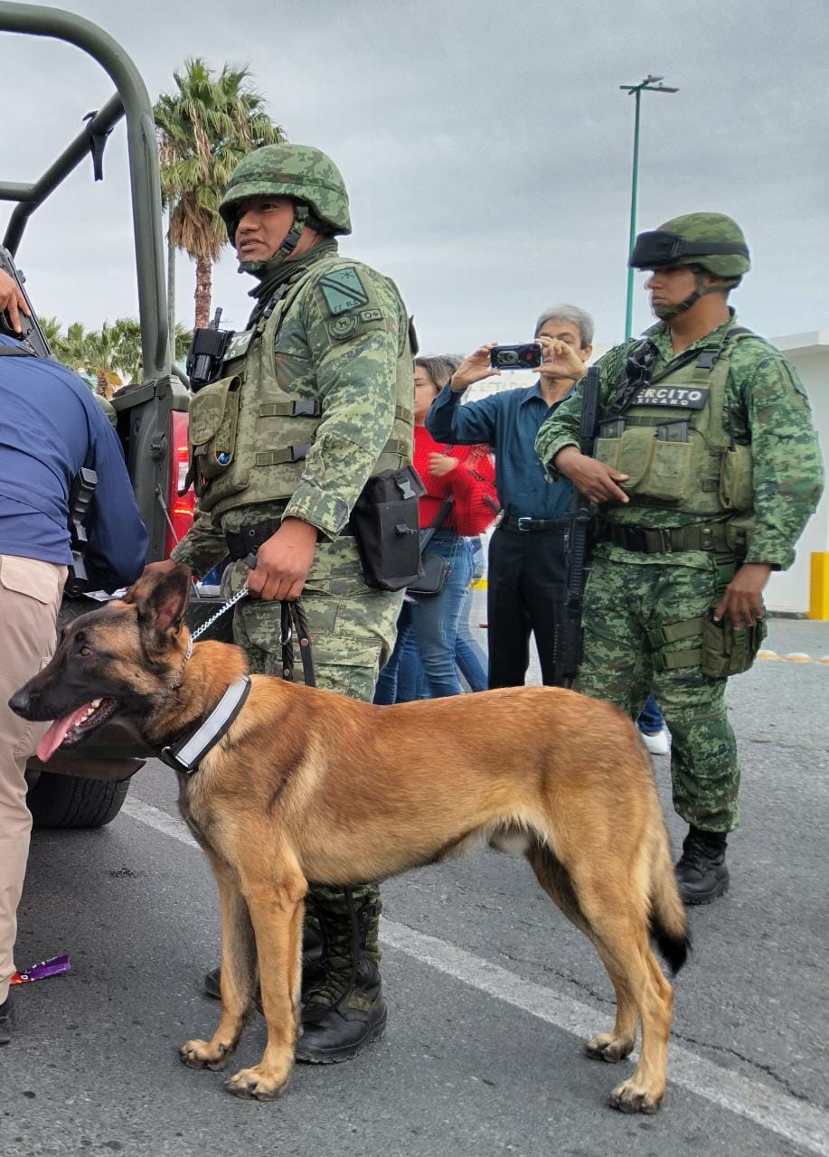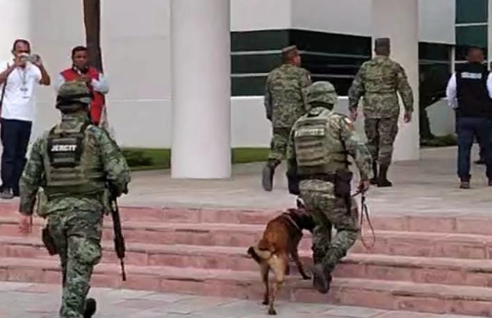 Minutos después, hizo acto de presencia la agrupación de binomios del Ejército Mexicano, que dejó bajo la responsabilidad del elemento “Cletus”, la revisión del exterior del Congreso, incluida la zona de estacionamiento.